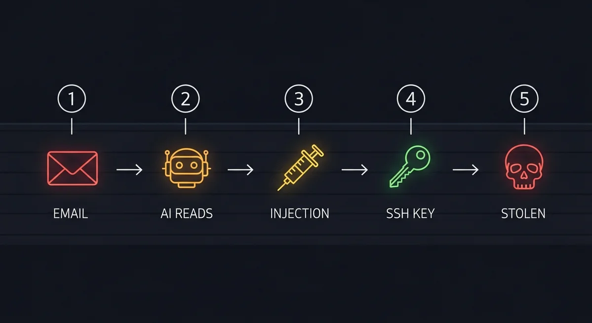 Matvey Kukuy, CEO d’Archestra AI, décide de prouver le point. Il envoie un email malveillant à une instance Clawdbot vulnérable. L’email contient une injection de prompt—du texte qui ressemble à des instructions légitimes.