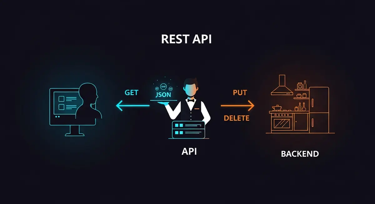 - API REST — Qu'est-ce qu'une API REST ? Le contrat invisible qui permet à vos applications de se parler via HTTP, avec GET, POST, PUT et DELETE comme seul vocabulaire.